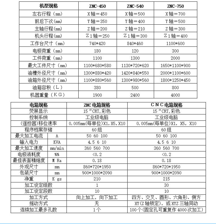 ZNC火花機機械特性: